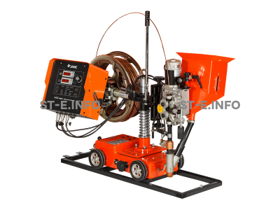 Мощный инверторный источник питания с передвижной кареткой, на которую установлены механизм подачи проволоки, 25-ти килограммовая кассета с проволокой, бункер со сварочным флюсом и блок управления.